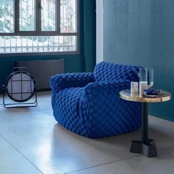 디자이너 이탈리아 크리 에이 티브 블루 팻 게으른 거실 의류 매장 호텔 패브릭 싱글 백 소파 의자